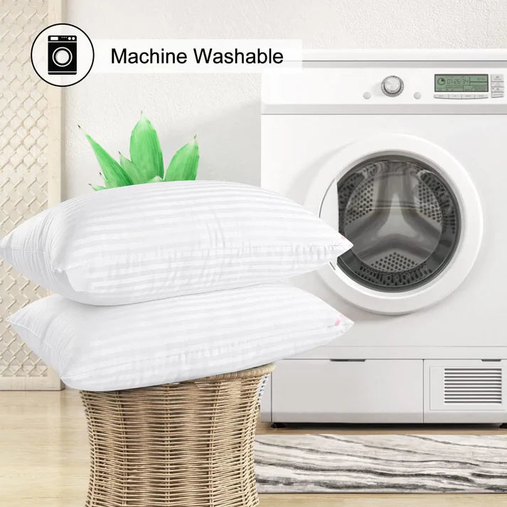 These bed pillows are machine washable with tumble dry low, and will always feel and look like new! All product materials are carefully selected, strictly inspected and well constructed to make the pillows durable to daily usage.